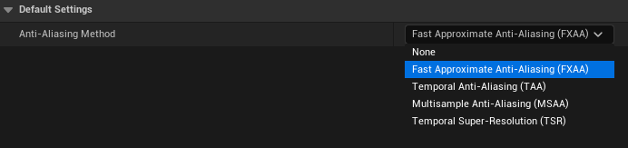 만약 FXAA가 문제가 있을 시 None으로 사용해도 된다.