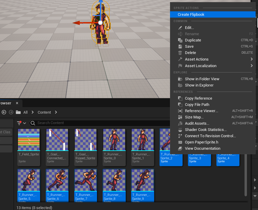 여러 개로 분리된 스프라이트를 하나의 파일로 합쳐 애니메이션처럼 재생될 수 있게끔 도와주는 기능이다. 네이밍 규칙은 FB_Runner_Idle 이런 식이다. **Frames Per Second**를 조정하면 애니메이션 재생 속도를 조절할 수 있다.